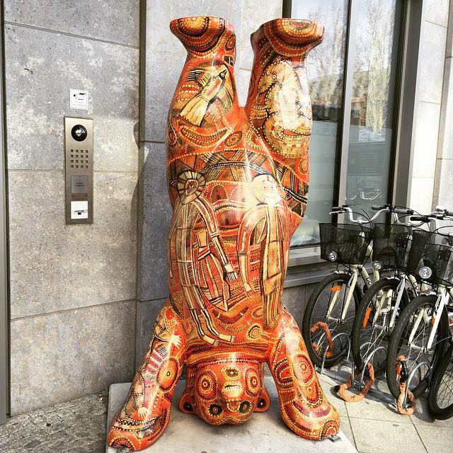 Hoje em dia, os ursos se tornaram uma parte integrante da arquitetura da cidade. É impossível você não vê-los e querer sair correndo para tirar fotos com todos. Eu mesma não resisto e lá estou eu agarrada neles, curtindo meu momento #fotojacú da viagem.