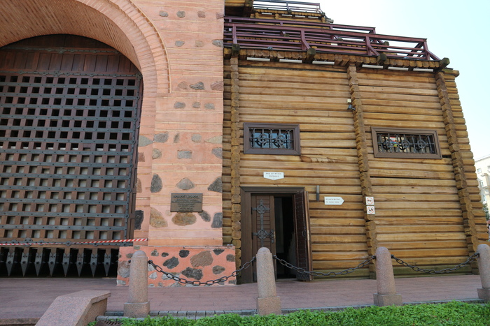 O portão fica na esquina da rua Volodymyr com a Yaroslaviv Val Street.
