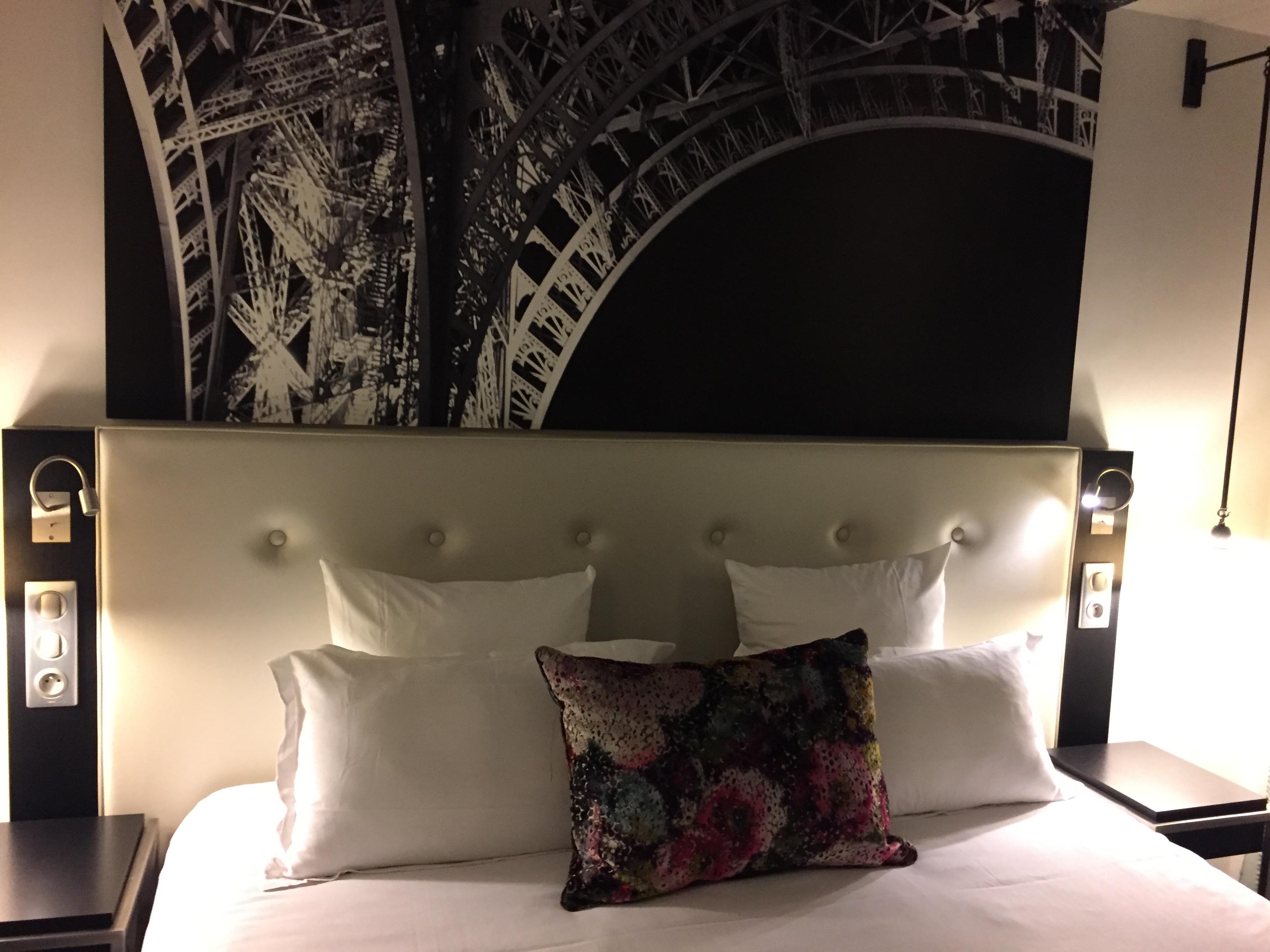 Eu retornei para o meu hotel, o Hotel Gustave, que tem vários quartos com vista da Torre Eiffel, e pude ter uma das melhores noite de sono possíveis, depois de tanta diversão neste dia.