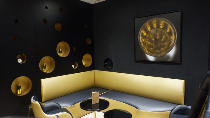 Um hotel com motivo de Champagne não poderia deixar de ter um bar onde se encontram as melhores opções da bebida. O lugar é um dos mais agradáveis do hotel, com uma mobília linda e luxuosa, em tons de preto e dourado.