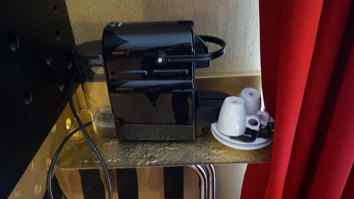 Eu fiquei hospedada na suíte Bollinger, no 5º andar. Uma suíte bem decorada, com frigobar, televisão, cofre, cafeteira. Linda e confortável, eu adorei minha hospedagem ali.