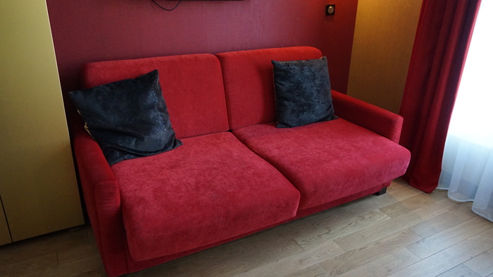 A cama de casal é enorme, daquelas que você deita e não quer levantar mais. Lençóis de qualidade, travesseiros fofos e cheirosos, onde percebe-se que tudo é cuidado com muito primor. Eu fiquei hospedada com minha mãe e filha de quase 2 anos, e nem precisamos abrir o sofá cama de tão grande que a cama é.