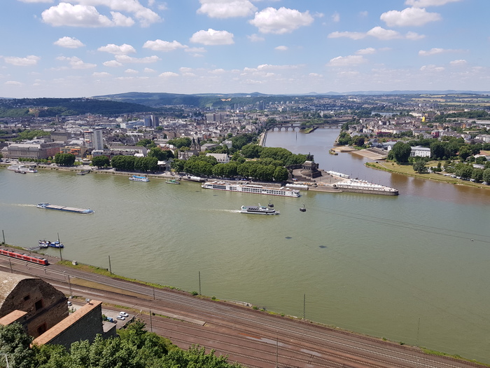 Já deixa eu te avisar que uma das grandes vantagens de se entrar na fortaleza, além de conhecer a história, é ter a vista fantástica de dentro da fortaleza, que dá de frente para o Deutsches Eck. Somente de dentro da fortaleza se vê o Deutsches Eck de frente. Mas para aqueles que tem pouco interesse em entrar na fortaleza, a boa notícia é que tem uma plataforma de observação gratuita e que também tem uma vista linda da região. Infelizmente, a vista não é tão impactante, mas já vale a pena.